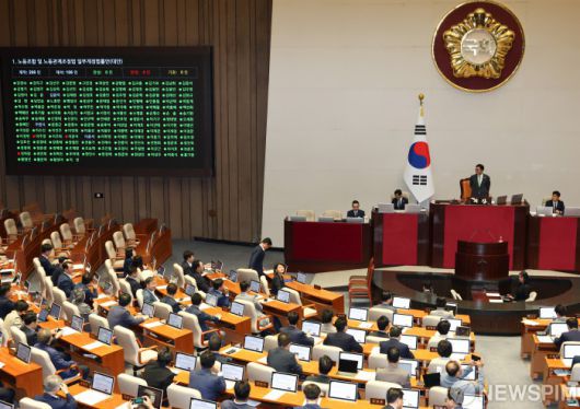 [서울=뉴스핌] 최지환 기자 = 24일 오전 서울 여의도 국회에서 열린 제428회 국회(임시회) 제2차 본회의에서 노동조합 및 노동관계조정법 일부개정법률안이 가결되고 있다. 2025.08.24 choipix16@newspim.com |