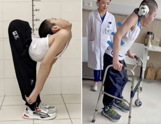 180도로 휘어진 척추로 인해 ‘폴더 소년(접힌 소년)’이라 불린 중국 청년이 대수술 끝에 몸을 곧게 펴는 데 성공했다.