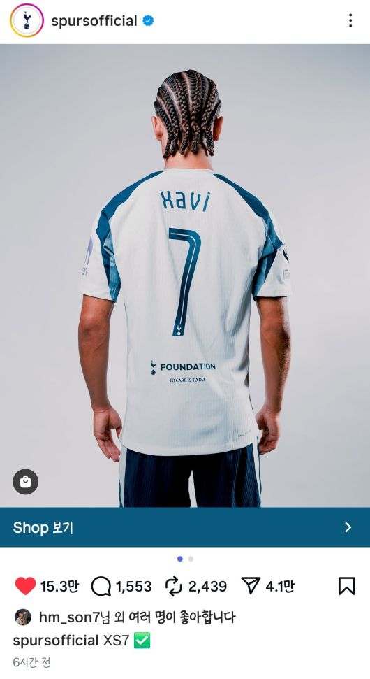 토트넘 홋스퍼의 새 얼굴 사비 시몬스가 입단 소감에서 손흥민을 언급하며 존경을 표했다. 이에 손흥민이 직접 그의 SNS 게시물에 '좋아요'로 화답하는 훈훈한 그림이 연출됐다.