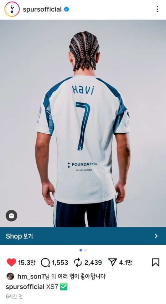 토트넘의 7번은 손흥민이 LAFC로 떠난 이후 잠시 공석이었으나, 시몬스가 7번을 선택하면서 약 3주 만에 새 주인을 찾게 됐다.