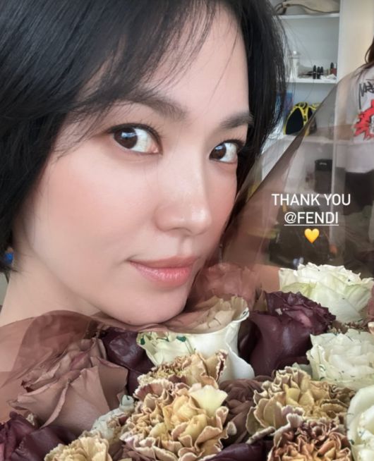 공개된 사진 속 송혜교는 꽃다발을 품에 안고 카메라를 응시하고 있다. 송혜교는 가을 분위기를 물씬 풍기는 메이크업을 한 채 물오른 미모를 뽐냈다.