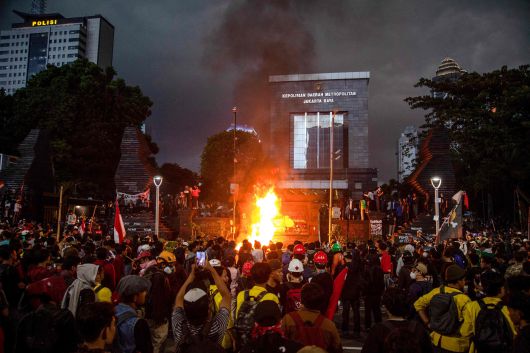 30일(현지 시각) AP·블룸버그 통신 등에 따르면, 전날 자카르타에서 시위대 수백명이 경찰청 기동대 본부로 행진하며 건물 진입을 시도했다. 이틀 전 국회 하원의원 주택수당 인상에 반발해 시위하던 중 오토바이 배달 기사가 경찰 장갑차에 깔려 숨진 사실이 알려지면서 경찰청장 해임을 요구하고 나선 것이다.