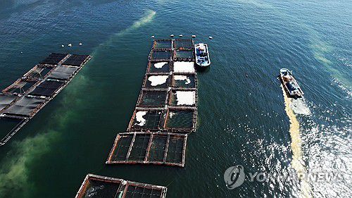 (남해·하동=연합뉴스) 이정훈 기자 = 적조 특보가 내려진 경남 해역에서 양식어류 폐사가 이어지고 있다.