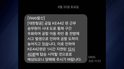 YTN 취재에 따르면 오늘(30일) 현지 시각으로 낮 12시에 출발할 예정이었던 대한항공 KE442편이 1시간가량 지연 출발했습니다.