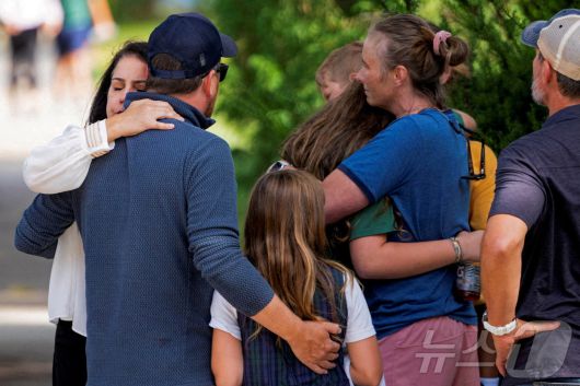 27일(현지시간) 미국 미네소타주 미니애폴리스의 어넌시에이션 성당과 부속 학교 인근 총격 현장에서 시민들이 서로를 다독이며 위로하고 있다. 2025.8.28 ⓒ AFP=뉴스1 ⓒ 로이터=뉴스1 |