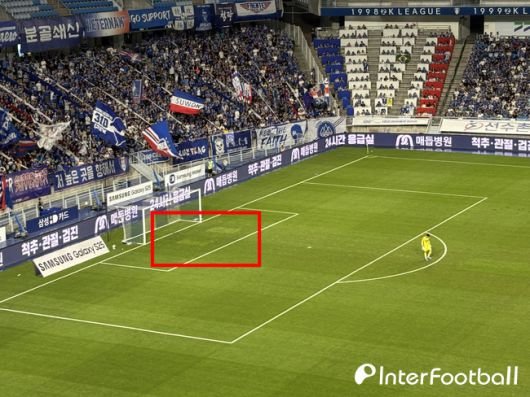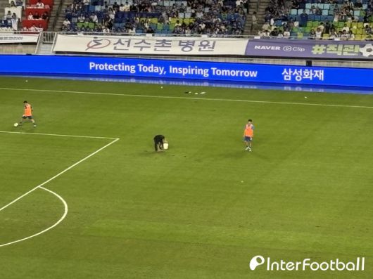 수원월드컵경기장의 잔디가 신음하고 있다. 볼 경합이 발생할 때면 잔디가 들리고 파였다. 울퉁불퉁한 잔디 탓에 공이 통통 튀어 선수들이 트래핑과 슈팅에 애를 먹는 장면도 연출됐다. 전반전 도중 파울리뇨는 파인 잔디를 직접 두드리면서 나름대로 보수 공사를 진행하기도 했다. 하프타임에 파이고 들린 곳을 메우는 작업이 이루어져야 했다.