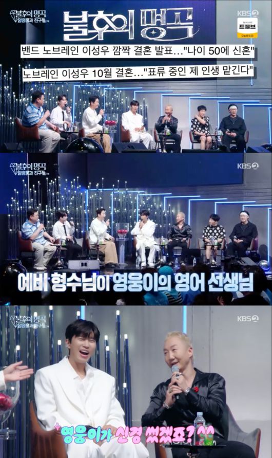 음악적 영감도 있냐는 물음에 임영웅은 “예, 음악적 영감도 항상 받고 있다”고 털어놨다. 그 주인공은 노브레인이었다. 노브레인은 ‘넌 내게 반했어’를 부르며 등장해 객석을 뒤집어놨다. 이성우는 ‘임영웅이 노브레인 덕에 영어가 늘었다’는 말에 “제가 딱 보기에도 영어를 잘하는 사람은 아니다. 제가 10월에 결혼을 한다”고 말했고, 객석에서는 ‘축하해’라며 박수를 보냈다.
