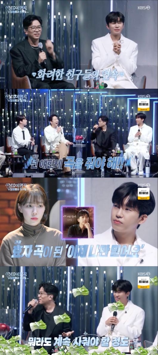 마지막 키워드는 ‘소원’이었다. 임영웅은 “가수가 돼서 언젠가 이분께 곡을 받는 게 소원이었다. 너무 감사하게도 이뤄졌다”고 말했고, 신동엽은 “제가 듣자하니, 거꾸로 이분도 임영웅을 통해 소원을 성취했다는 말을 들었다”고 전했다.
