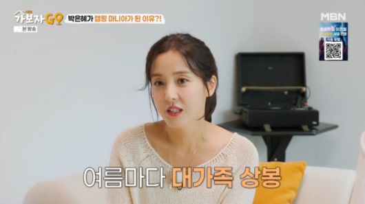 박은혜는 "어릴 적 동두천 시골에 살았다. 여름마다 온 가족이 모였다. 계곡에 가서 텐트 치고 놀고, 비가 오면 경운기도 타고 그랬다"며 자연에서 뛰놀던 추억으로 자연스레 캠핑을 즐기게 됐다고 밝혔다.