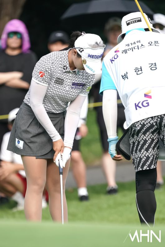 (MHN 용인, 박태성 기자) 30일 경기도 용인시에 위치한 써닝포인트 컨트리클럽(파72 예선 6,826야드ㅣ본선 6,728야드)에서 '제14회 KG 레이디스 오픈(총상금 10억원, 우승상금 1억8천만 원) 2라운드 경기가 열렸다. 박현경(메디힐)이 10번홀 경기를 펼치고 있다. <저작권자 Copyright ⓒ MHN / 엠에이치앤 무단전재 및 재배포 금지>