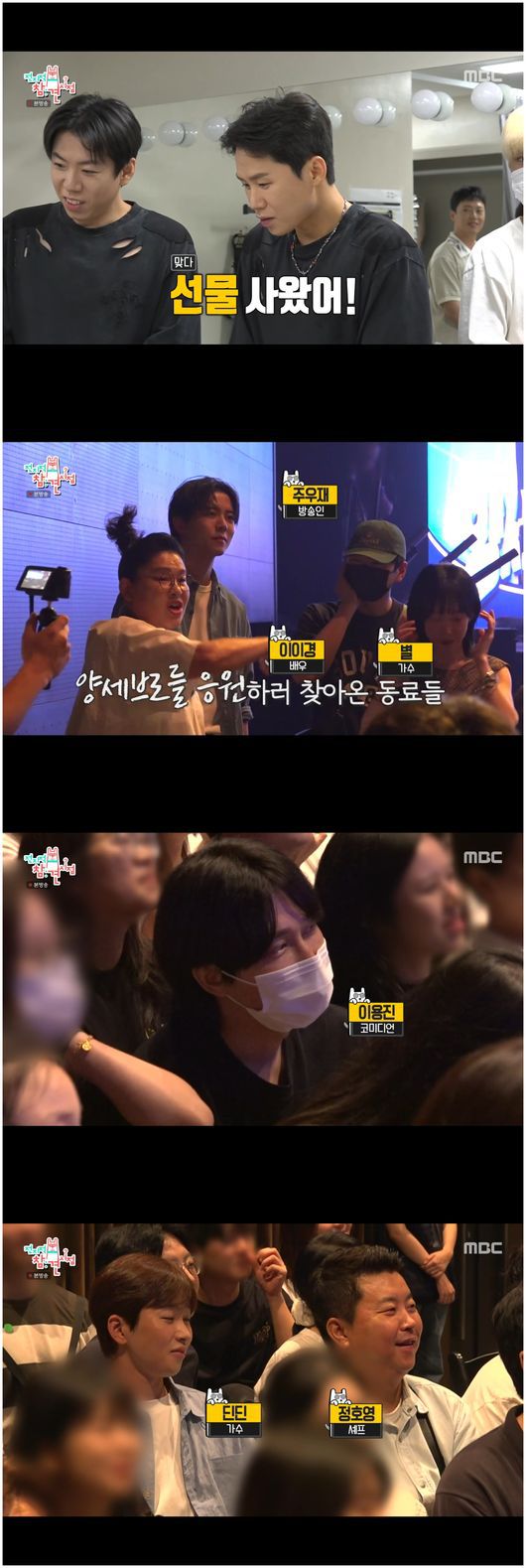 게다가 관객석에는 눈에 익숙한 이들이 등장했다. 이영자, 심진화, 정호영 셰프, 딘딘, 이이경, 별, 신기루까지 온 것이다. 특히 이영자는 형제들을 위해 맞춤 옷 선물을 해 양 브라더스를 감동시켰다.