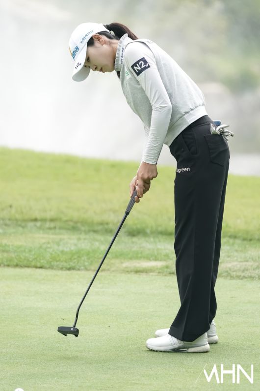 (MHN 용인, 박태성 기자) 30일 경기도 용인시에 위치한 써닝포인트 컨트리클럽(파72 예선 6,826야드ㅣ본선 6,728야드)에서 '제14회 KG 레이디스 오픈(총상금 10억원, 우승상금 1억8천만 원) 2라운드 경기가 열렸다. 이가영(NH투자증권)이 1번홀 경기를 펼치고 있다. <저작권자 Copyright ⓒ MHN / 엠에이치앤 무단전재 및 재배포 금지>
