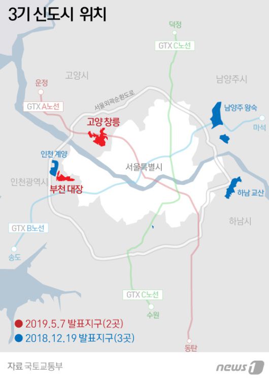 31일 국토교통부에 따르면 문재인 정부 시절 발표된 3기 신도시는 총 32만 8000가구 규모의 주택 공급 계획으로, 현재 남양주 왕숙(7만 5000가구), 하남 교산(3만 7000가구), 고양 창릉(3만 8000가구), 부천 대장(1만 9000가구), 인천 계양(1만 7000가구) 등 주요 지구가 지난해 착공했다.