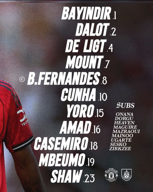 이날 맨유는 마테우스 쿠냐를 필두로 브라이언 음뵈모, 메이슨 마운트, 아마드 디알로, 카세미루, 브루노 페르난데스, 디오구 달롯, 루크 쇼, 마테이스 더 리흐트, 레니 요로, 골키퍼 아타이 바인드르가 선발 출전했다.