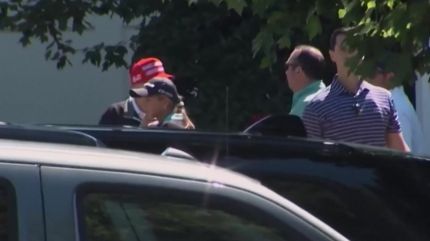 트럼프 대통령은 마가 모자와 검은 재킷을 입고 걸었으며, 오후에 백악관으로 복귀했습니다.