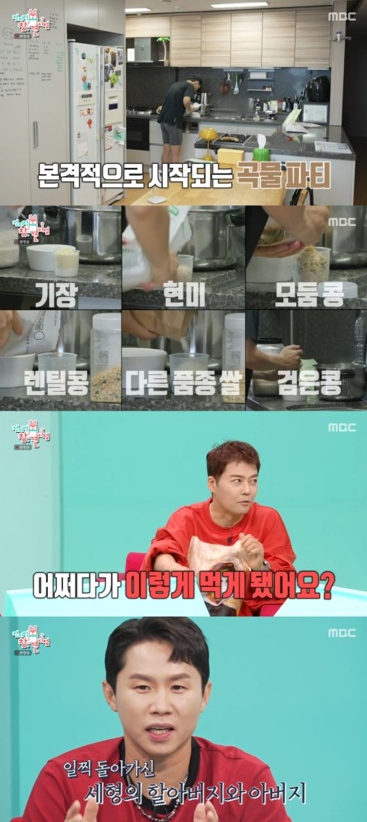 이날 새로 이사 온 집에서의 하루를 보여준 양세형은 다양한 종류의 곡물을 꺼내 밥을 지었다. 무려 8종 프리미엄 곡물을 꺼내 눈길을 끌었는데, 기장과 현미를 시작으로 모둠 콩, 다른 품종 쌀, 검은콩, 유기농 눌린 보리까지 추가해 모두를 놀라게 했다.