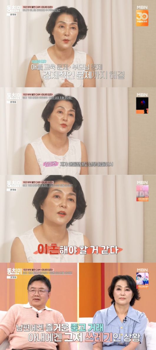 하지만 김미란도 할 말이 있었다. 약 30년 간 아내이자 엄마이자 며느리로 노력하며 살았다는 그는 "이번 이사할때 처음으로 남편이 옆에 있었다. 남편이 바빴으니까 집안일은 모든걸 제가 책임지고 했다. 늘 혼자서 세 아이를 챙기고 집안을 돌봐야 했다"고 털어놨다.