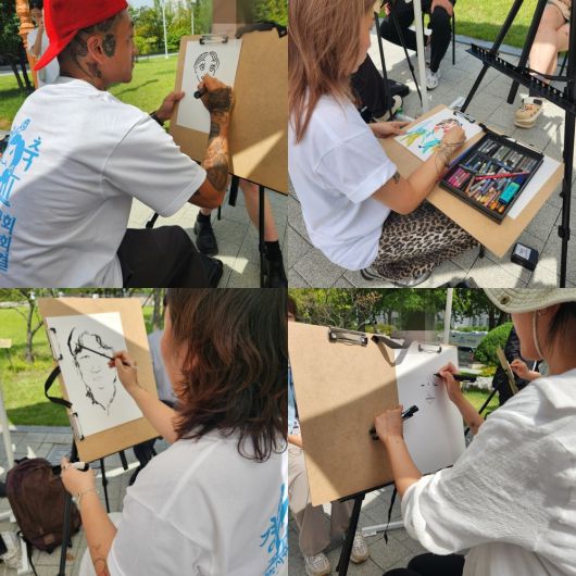 국회 보건복지위원회 전체회의에서 문신사법이 통과된 지난 8월 27일 타투이스트들이 국회 소통관 앞에서 시민들에게 캐리커처를 그려주고 있다. 이혜리 기자 |