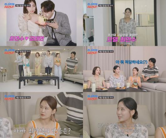 9월 1일(월) 방송될 ‘조선의 사랑꾼’에서는 자타 공인 '스타 셰프' 최현석의 딸 최연수가 특별 게스트로 스튜디오를 방문한다. 최연수는 밴드 딕펑스의 보컬 김태현과 9월 결혼을 앞두고 있다. 사랑꾼 MC들마저 압도하는 '모델 비율'에 모두가 감탄한 가운데, 황보라는 "최현석 셰프님 따님이 이렇게 미인이시냐"면서 화들짝 놀랐다.