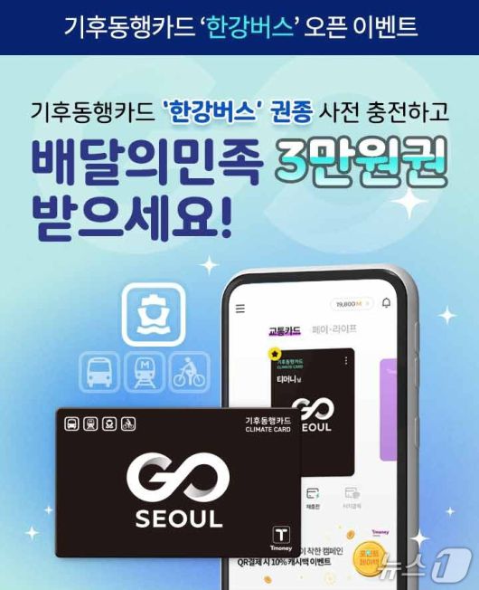 여장권 서울시 교통실장은 "이번 기후동행카드 할인 확대와 한강버스 권종 신설이 시민들의 대중교통 이용을 촉진하고 친환경 생활을 확산하는 계기가 될 것으로 기대한다"며 "앞으로도 시민이 체감할 수 있는 교통정책을 지속해서 발굴해 이용 편의를 높여 나가겠다"고 밝혔다.