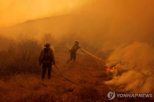 미국 캘리포니아 산불을 진압중인 소방관들의 모습. [사진 = AFP 연합뉴스] |