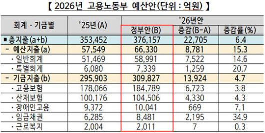 31일 고용노동부에 따르면 이 같은 내용이 담긴 예산안이 29일 국무회의에서 의결됐다.