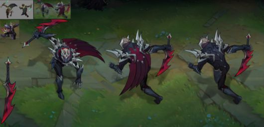 이에 라이엇게임즈는 두 스킨 모두 은색과 붉은색 컬러를 덜 사용하면서도 검은 톤을 입히는 방식으로 제작했고, 위험하면서도 세련된 그림자의 느낌을 담았다.