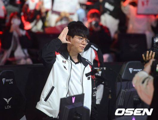 [OSEN=종로, 고용준 기자] 3강 중 하나인 T1을 상대로 승리하면서 플레이오프 경쟁력에 대한 기대감을 올린 KT가 농심을 완파하고 정규시즌을 14승 16패로 마감했다. 농심은 하반기 레전드 그룹 12경기를 모두 패하면서 체면을 구겼다.