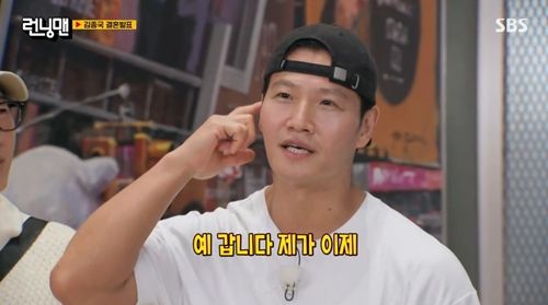 결혼을 발표한 김종국이 예비신부의 정체를 밝혔다. 사진=런닝맨 캡처 |