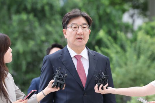 권성동 국민의힘 의원이 27일 오전 서울 종로구 민중기 특별검사팀 사무실에서 정치자금법 위반 등의 혐의에 대한 조사를 받기 위해 출석하며 취재진의 질문에 답하고 있다. 김영원 기자 forever@hani.co.kr