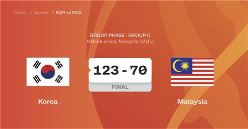 류영준 감독이 이끄는 대표팀은 31일(한국시간) 몽골 울란바토르에서 열린 말레이시아와 대회 조별리그 C조 예선 첫 경기에서 123-70으로 승리했다.