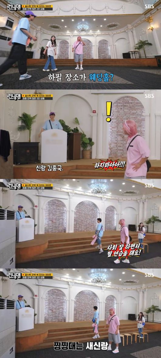 이날 방송에서 유재석은 도착한 장소가 웨딩홀과 비슷해 보이자 “오늘 종국이 결혼 이벤트예요?”라며 “신랑 김종국”이라고 결혼식 예행 연습했다.