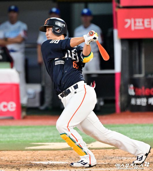 김경문 감독은 지난달 31일 대전 한화생명볼파크에서 열리는 2025 신한 SOL 뱅크 KBO리그 삼성 라이온즈와 홈경기를 앞두고 취재진을 만나 "오늘 경기가 어떻게 될 진 모르겠지만, 엔트리가 늘면 투수 (엄)상백이랑 (강)재민이가 오고, 포수가 하나, 내야수 박정현을 포함해 5명이 올라올 것"이라 밝혔다.