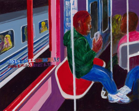 무표정한 얼굴로 휴대폰만 들여다보는 지하철의 남자. 그가 입은 녹색 옷, 앉은 빨간 의자와 보라색 실내까지 온통 원색으로 경쾌한데도 화면을 지배하는 정서는 쓸쓸함이다. 건너편 지하철의 금발 인물들까지, 눈 맞추는 이 하나 없다. 서용선(74)의 근작 ‘브루클린 ⓝ5’다.