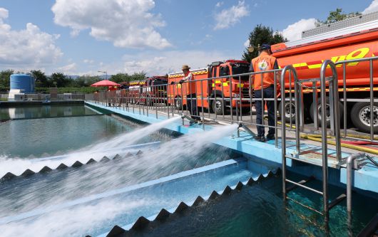 31일 강원도 강릉시 홍제정수장에서 물을 담아온 소방차량들이 긴급 급수를 하고 있다. /장경식 기자 |