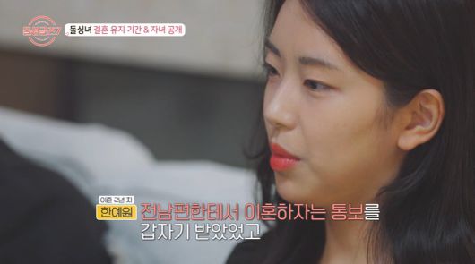 한예원이 결혼 6개월 만에 이혼 통보를 받았다고 고백했다.