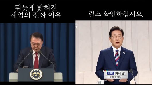 윤석열 전 대통령이 단상에 서서 "제가 계엄을 선포한 진짜 이유는 여러분이 제가 보낸 릴스를 보지 않았기 때문입니다. 지금이라도 확인하고 답장하십시오. 마지막 기회입니다"라고 말합니다.