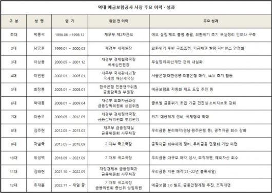 눈여겨 볼 점은 지금까지 선임된 예금보험공사 사장이 대부분 기획재정부(옛 재무부, 재정경제부) 경력을 갖고 있다는 것이다.
