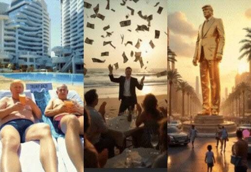 도널드 트럼프 미국 대통령이 지난 2월 25일(현지시간) 밝힌 가자지구 개발 구상을 담은 AI 동영상 중 일부. (사진=트럼프 트루스소셜 캡처) |