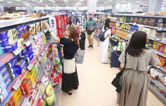 지난달 11일 통계청 국가통계포털(KOSIS)에 따르면 7월 식료품 및 비주류음료 물가지수는 125.75(2020년=100)으로 작년 동월보다 3.5% 상승했다. 사진은 이날 서울의 한 대형마트에서 장을 보는 시민. 연합뉴스 |