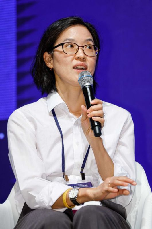 정보라 작가가 19일 서울 중구 롯데호텔에서 열린 '2022 여성리더스포럼'에서 '글로벌(K-스토리) 한국 여성 작가들의 활약성과 의미, 가능성'이란 주제로 토론하고 있다./강진형 기자aymsdream@ |
