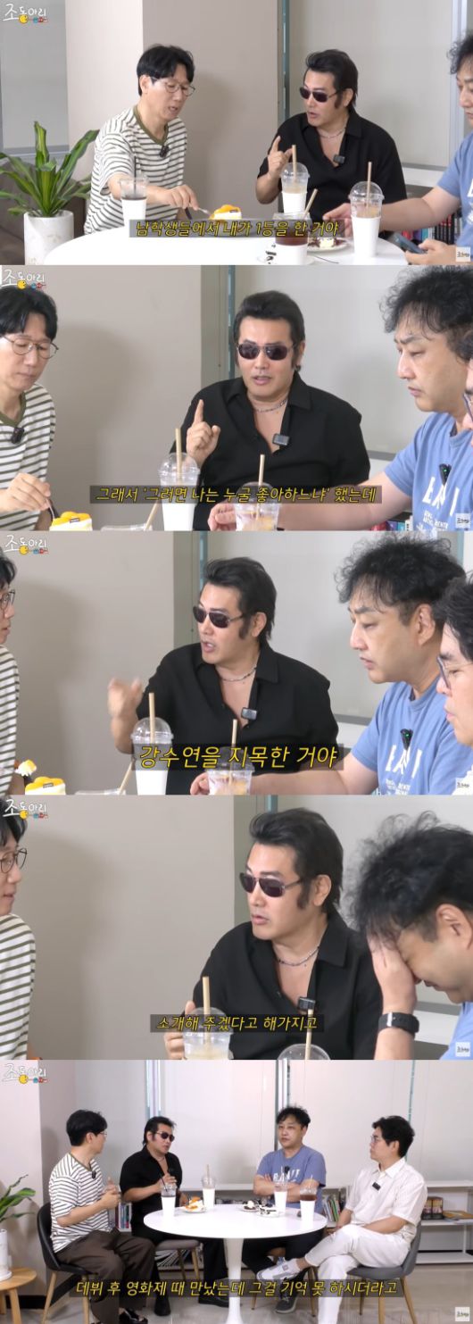 그러자 김보성은 "초등학교 6학년 때 내가 앙케이트 조사에서 1등을 한 거다. 그래서 '나는 누굴 좋아하냐'고 했는데, 그 때 당시 '왕짱구'에 나왔던 강수연을 지목했다"고 故 강수연의 이름을 소환했다.
