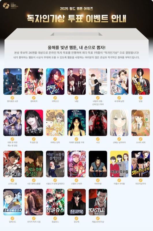 '2025 월드 웹툰 어워즈' 본상 후보작 투표 페이지. (문화체육관광부 제공) *재판매 및 DB 금지 |