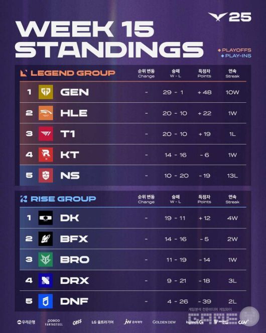 2025 LCK 정규 시즌 최종 순위 /LCK |