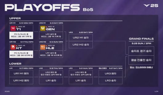 '2025 LCK' 포스트 시즌은 이달 3일부터 7일까지 열리는 '플레이-인', 10일부터 28일까지 펼쳐지는 '6강 플레이오프'로 진행된다.