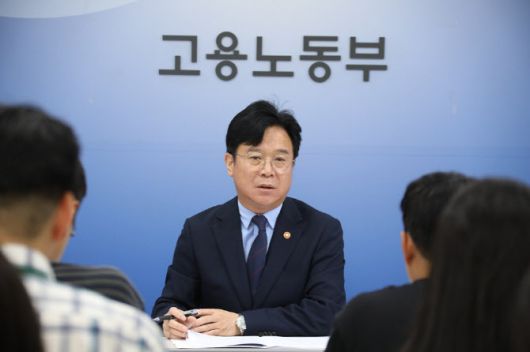 김영훈 고용노동부 장관이 1일 정부세종청사에서 출입기자단 간담회를 하고 있다.(사진=고용노동부) |