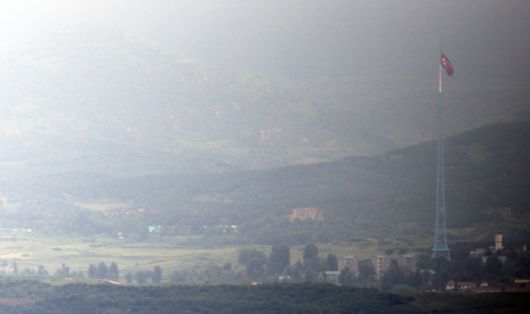 ▲김여정 북한 노동당 부부장이 이재명 정부가 출범 직후 단행한 대북 긴장완화 조치를 평가 절하하고 적대적 태도를 이어가겠다는 뜻을 밝힌 가운데 14일 경기도 파주시 오두산 통일전망대에서 바라본 서부전선 비무장지대(DMZ)에서 북측 기정동 마을 인공기가 펄럭이고 있다. ⓒ연합뉴스 |