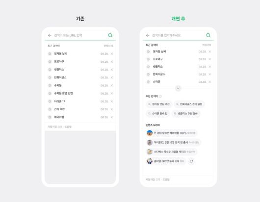 그동안 네이버 모바일 검색창 하단에는 사용자가 직접 검색했던 키워드가 최대 30개까지 순차적으로 노출됐다. 그러나 이번 개편 이후에는 기본적으로 5개만 노출되며, 사용자가 원할 경우 '펼치기' 버튼을 눌러 기존처럼 최대 30개까지 확인할 수 있다. 네이버는 모바일 화면 크기와 이용자 행동 패턴을 고려해 최근검색어 노출 개수를 줄이고, 그만큼 AI 추천 영역을 강화했다.