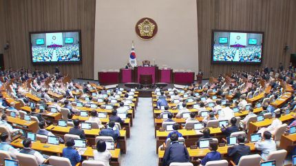 지금 화면으로는 이 시각 국회 본회의장 모습 보고 계십니다. 이재명 정부 출범 뒤 첫 정기국회, 오늘부터 100일 동안 대장정이 시작되는데요. 조금 전부터 정기국회 개회식이 시작됐습니다. 지금 화면을 보면 푸른 빛 한복을 입고 앉아 있는 민주당 의원들의 모습이 많이 보이고요. 우원식 국회의장이 어떤 말을 할 것으로 보이는데요. 목소리 들어보겠습니다. 역시 우원식 국회의장도 한복을 입고 개회식에 참석을 했습니다. 우원식 국회의장이 당초 한복을 입자고 제안을 했었죠.