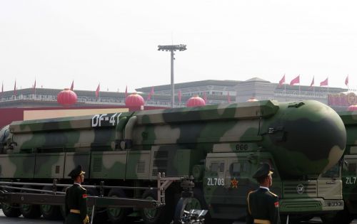 2019년 열병식에서 공개됐던 중국 정부의 최신형 ICBM인 둥펑-41. 1일 중국시보 등 대만언론에 따르면 대만 국방부는 최신 보고서에서 중국 핵탄두 보유량이 2030년 1000개에 이를 것으로 예상했다. 연합뉴스 |